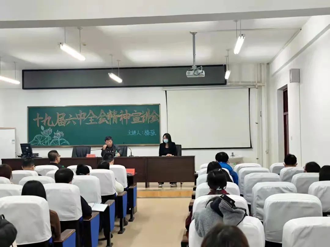 滕强书记还重点强调了习近平总书记在会议上提到的“两个确立”、“十个明确”等关键指导思想,让参会教师们深刻理解本次十九届六中全会的重点要义。在老师们的掌声中,本次宣讲会圆满结束。