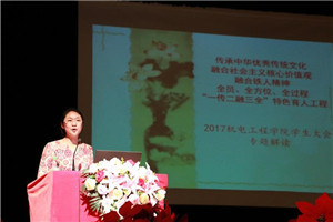 在全院学生中开展《传承中华优秀传统文化---德育主题》活动。融合社会主义核心价值观与铁人精神凝聚80字育人理念,在大一、大二班级中开展十个月百项德育活动实现全员、全方位、全过程教育。邀请老会战“当代徐霞客”采油一厂原党委副书记兼组织部长张朝仁老先生,为十大信誉学生讲述70余年的读书人生,他的48本日记书写油田50年变迁,退休后自学外语独自去世界五大洲徒步旅行,走访中国99座历史名城,用铁人精神的时代感悟与十大信誉大学生分享,鼓励学生读万卷书行万里路,胸怀大志。张老把退休后写的三本书送给十大信誉学生,这些书是他走访旅行和读书学习的成果,也是他对大庆精神、铁人精神的诠释,继承与发扬。张老一年时间来十大信誉多次,成为十大信誉学生