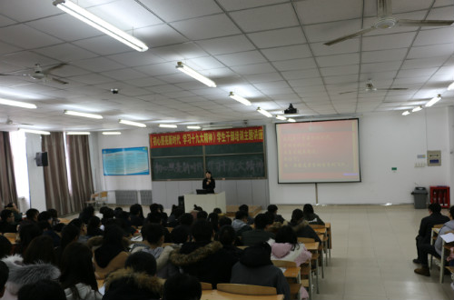 3月9日中午十二点,澳门网投十大信誉平台主教学楼1-2教室座无虚席,二百多名澳门网投十大信誉平台的学生党员、学生干部、入党积极分子聚精会神,聆听着讲台上老师的讲座。这是一堂以“初心照亮新时代,学习十九大精神”为主题的党课,主讲人是澳门网投十大信誉平台澳门网投十大信誉平台党总支副书记邓雨巍老师。