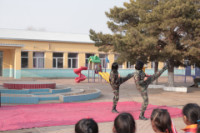 退伍大学生为孩子们表演军旅拳格斗术