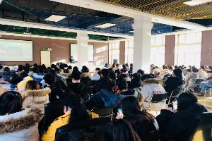 邓雨巍老师介绍了合肥万达酒店,并表达了对即将毕业大四学子的殷切期盼。招聘会上,汪总通过播放宣传片、PPT演示、面对面交流等方式向同学们介绍公司的概括、职业发展方向、人员需求、员工福利待遇等。不仅有2015级毕业生来到这次招聘会,还有许多在校的学生来学习观摩,招聘会讲座现场十分热闹。