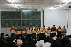 在主持人精彩的开场白后,“2016新老生交流会”正式开始。五名同学与大家分享了自己的学习经验和生活经验:姜中金同学与大家讲述了自己的大学经历,并解答了同学们的疑问;王响同学分析了各学科的重要性并讲解了英语四级方面的问题;孙雨昕同学为同学们阐述了如何过好大学生活;卢国宝同学播放了事先准备好的视频,并鼓励同学们做自己想做的事,不留遗憾;陈曦同学希望同学们明确自己的目标,为自己创造更好的明天。接踵而至的是文明班级的颁奖活动,由2016级辅导员王传英老师亲自为获奖班级颁奖,赢得观众的热烈掌声。活动临近尾声,十大标兵由邸梁、冯琼琼、李亚男、乔中天、孙雨昕、韦晶晶、周影、陈曦、张金鹏、卢国宝等同学荣获,随后,王传英老师为十大标兵颁发奖状。