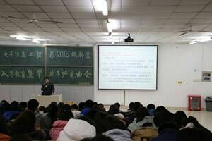 为加深老师与新生间的了解,有效的指导学生学习和生活,澳门网投十大信誉平台于2016年11月10日12:30在主楼2-2举办“电子信息工程系2016级新生入学教育暨学业导师见面会”。见面会由电子信息工程系主任成宝芝主讲,2016级电子信息工程专业教师出席本次见面会,2016级电子信息工程专业全体学生参加。