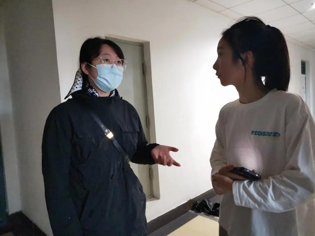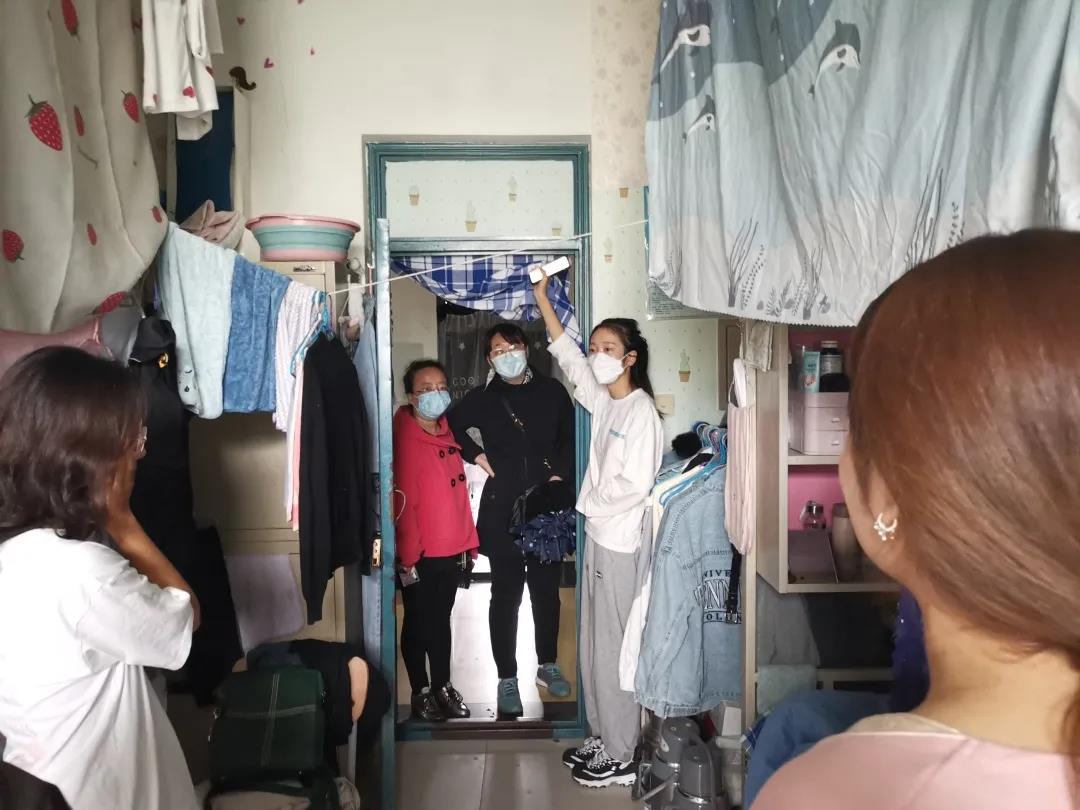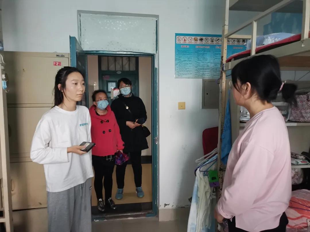 本次走访活动中老师们对宿舍疫情防控工作实际情况、违规使用电器等安全隐患进行了全面检查。宿舍通风情况、卫生情况与用电安全情况基本符合标准。对一些还存在不足的地方,邓书记提出了改进建议。同时她还向学生强调:当前处于疫情期间,大家应严格遵守学校规定,不外出,做好个人防护。