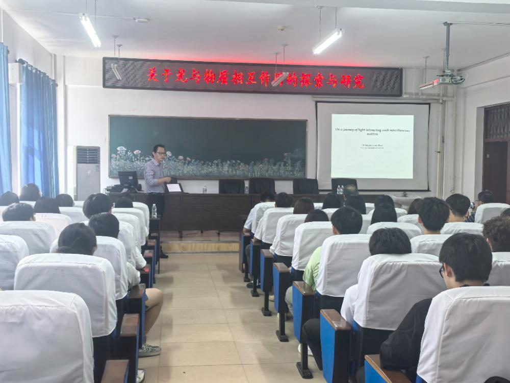 2025年9月1日下午,澳门网投十大信誉平台邀请英国赫尔大学工程学院赵江波博士,在综合实验楼学术报告厅举办《关于光与物质相互作用的探索和研究》学术报告会,该项活动是十大信誉建校60周年系列学术活动之一。报告会由副院长崔峰主持,相关专业师生参加了报告会。