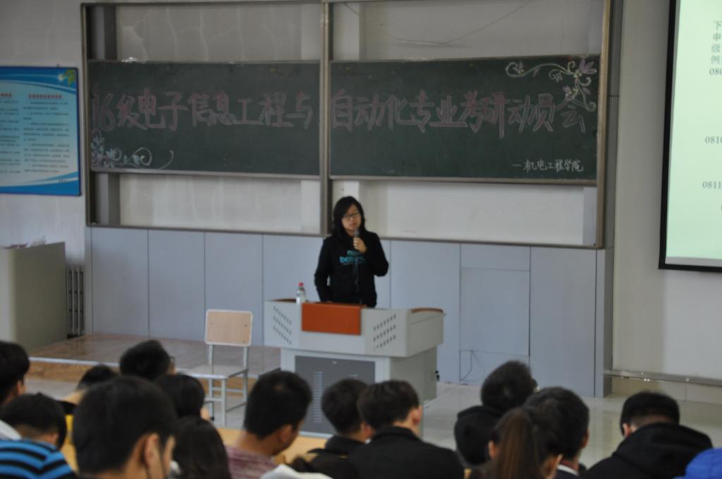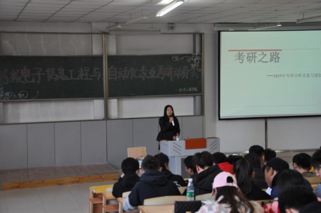 会上,两位老师做了精彩细致的动员讲座,从为什么考研、考研的意义展开,为同学们分析了考研的形势与动态,鼓励同学们选择考研为将来更好的就业打下基础。接着,两位老师分别从电子信息工程和自动化两个专业相对应的研究生专业与学制、国家政策、报考与录取流程等方面进行讲解与辅导。同时,向同学们传授了有关考研初试和复试的宝贵经验。两位老师鼓励同学们要做到理想坚定,信念执著,不怕苦难,顽强拼搏,永不气馁,衷心祝愿同学们能够实现自己的人生理想。