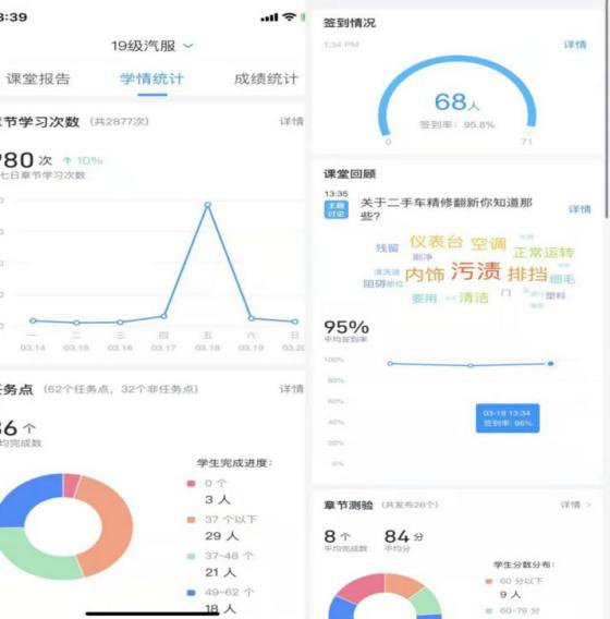 总体来看,各个课程的资源及资料上传丰富,既有课内教学视频、文件及题库,又有针对性的设置及安排了课外拓展环节,学生们在学习过程中的可借鉴性强。在课上教学活动的组织上,学习任务清晰明确。提前发布学习任务单,课前五分钟设置入门测环节,针对学生上一节的学习状况,调整本节授课计划。课中,设置主题讨论、选人、抢答等课上活动,互动环节紧凑,并实行积分制,有效保证了学生的学习状态,提高了学生的学习积极性。课后,及时进行一小时内出门测试,检测学生本节课学习情况。并进行学业预警提示,答疑及作业下发讲解,保证了学生知识的巩固性。