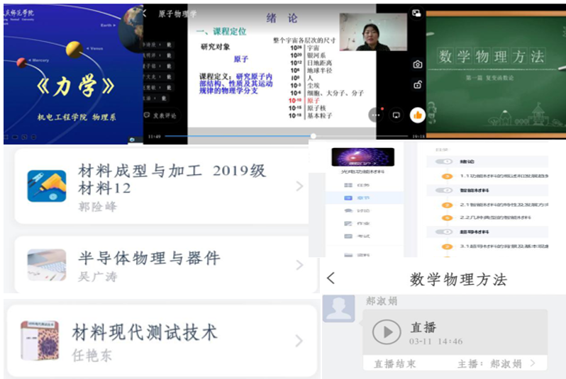 本学期物理学及材料科学与工程专业共有10名教师承担了13门专业课的讲授任务。经过3周的在线教学,总体运行平稳有序。教师们能够合理选择在线教学平台,提前制定在线教学方案,采用录播或直播的方式结合优质的课程资源进行授课。课堂上及时组织学生签到,课堂任务发布和教学组织过程紧凑有序。