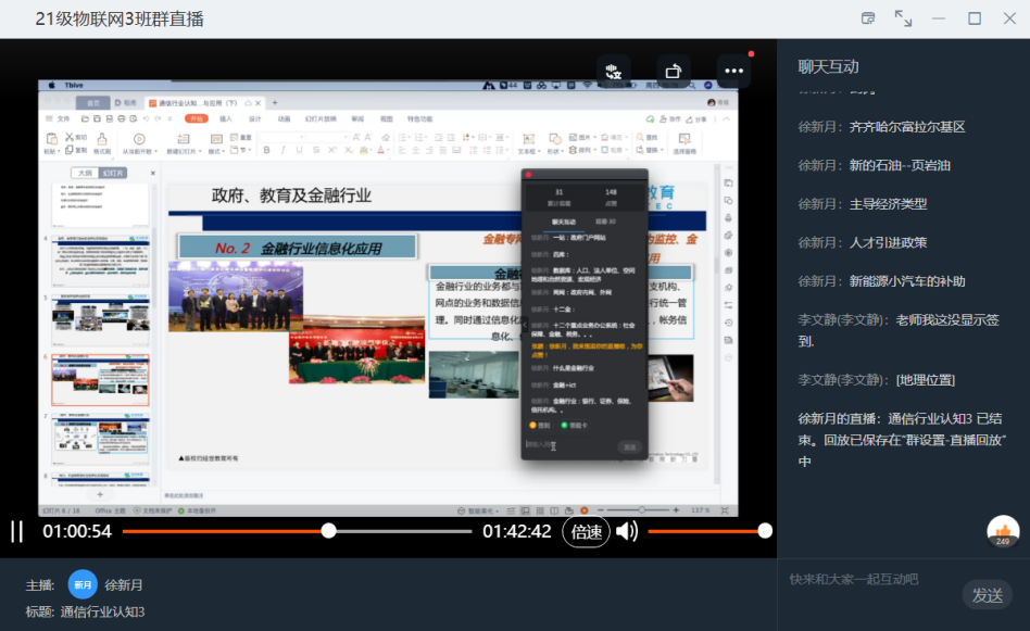 1.部分老师采用录播或者引用资源的形式,直播环节较少,这样对学生学习程度很难掌握,适当增加直播互动环节,有助于提高教学质量。