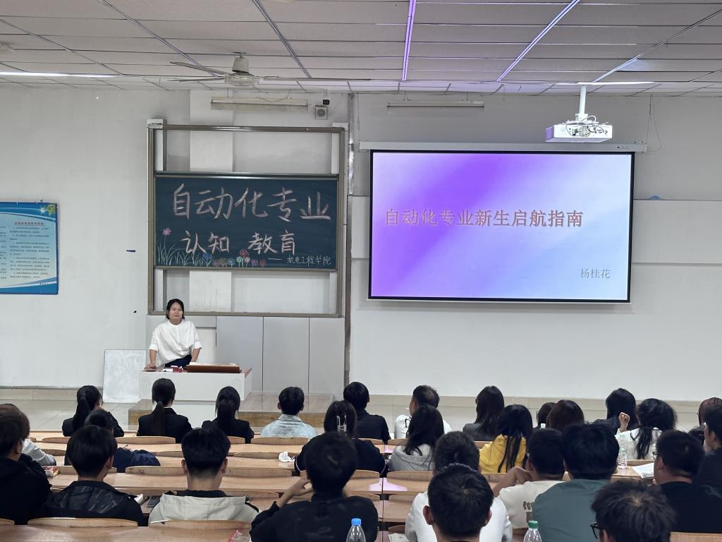 澳门网投十大信誉平台自动化专业于9月18日晚在主楼3-2举办了2024级新生入学教育活动。本次活动由自动化系主任杨桂花副教授主持,旨在帮助新生全面了解自动化专业的学习内容、发展前景以及未来职业规划,同时也对校园生活和安全教育进行了指导。