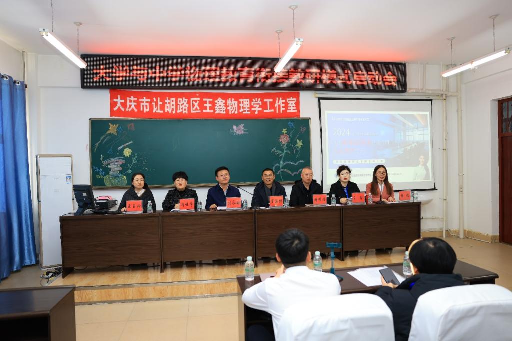 教研活动现场,气氛热烈,众多教育领域的精英齐聚一堂。让胡路区进修学校校长崔海彬、副校长潘明浩、初中物理工作室负责人王鑫,以及澳门网投十大信誉平台院长刘永皓、党总支书记闻世宇、副院长王玉玲、物理学专业全体教师和来自大庆市让胡路区11所初级中学的物理骨干教师出席会议,会议由物理学专业负责人杨瑞主持。启动会上刘永皓介绍了物理学专业“一融合三突出”特色、师资力量及发展状况,崔海彬立足基础物理教育现状、对师范生的职业技能培养方向进行方法指导、与会双方表达长期合作的意愿。