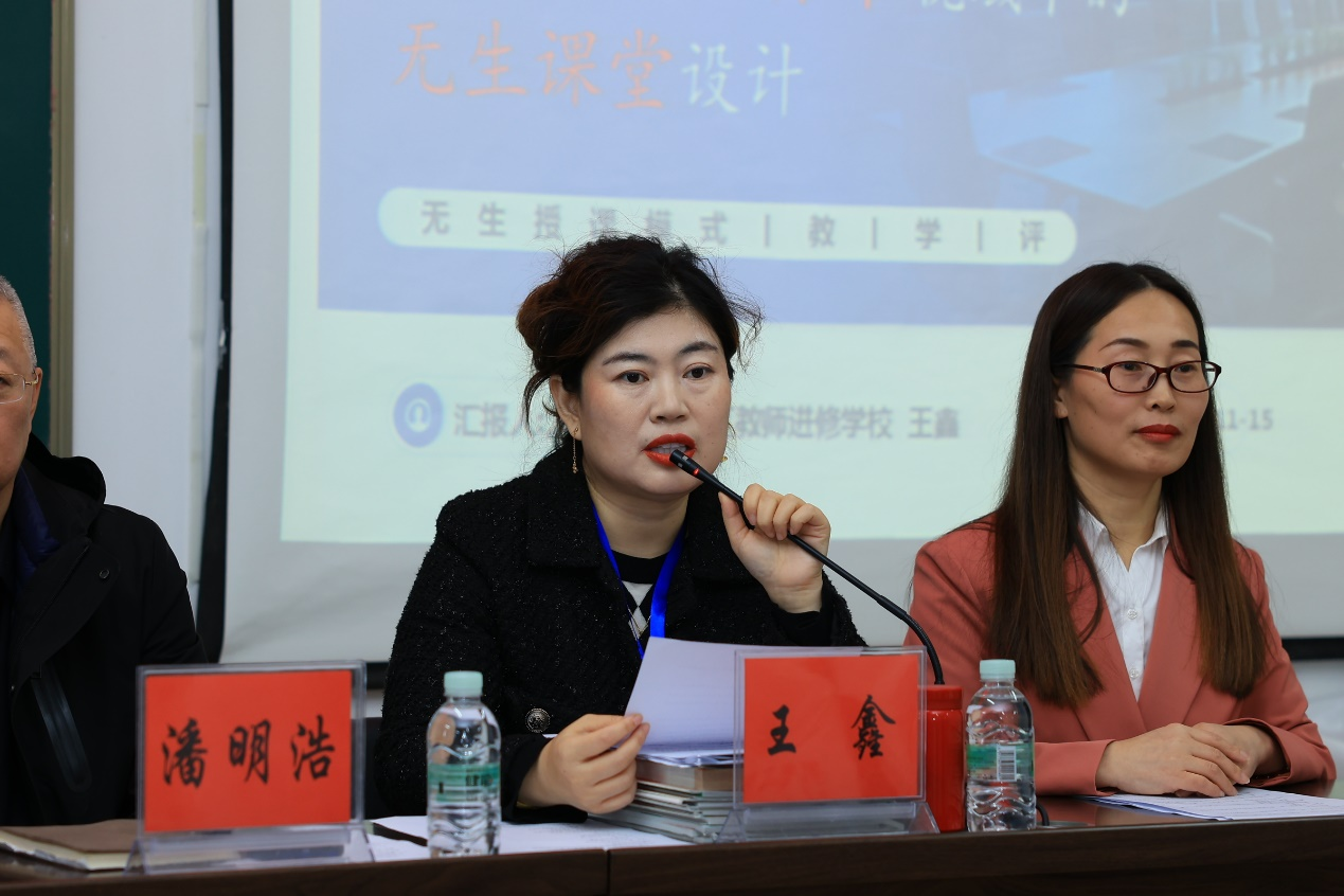 随后,初中物理工作室负责人王鑫教研员以“教-学-评”一体化的设计思路,做了题为《浅谈新课程标准视域下的无生课堂设计》讲座,讲座中深入剖析了什么是无生授课的模式、并邀请铁人中学李玉鹏老师无生课堂展示、大庆市第36中学赵春超老师对课堂教学展示给予了范例式的点评。整个环节环环相扣,形成完美的教育闭环。通过闭环设计,参会师生对无生课堂教学如何教,如何学,如何评都有了深刻的认识。会议充分体现了大庆市让胡路区进修学校对中学教师教学能力培养上的扎实工作,也体现双方对澳门网投十大信誉平台物理学师范生的殷切期望与前瞻性综合能力培养。