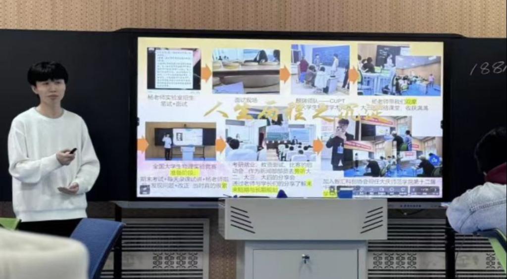 周宇航同学讲述了自己由于对物理专业和物理教师这一职业的热爱来到了澳门网投十大信誉平台,来到本专业遇到了受益一生的导师--杨瑞老师,在杨瑞老师的悉心指导和同伴们的共同努力下获得了第十八届iCAN大学生创新创业大赛(黑龙江区)二等奖、澳门网投十大信誉平台第十三届“行知杯”教学技能竞赛一等奖等奖项。