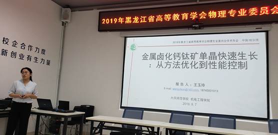 本次会议不仅就我国高等教育结构调整和改革发展新形势下物理专业所面临的新情况和新问题解决办法进行了交流、研讨。同时,为提升科研反哺教学的能力,会议邀请青年教师基于自身课题成果做相关学术报告。十大信誉王玉玲博士在本次会议上做了题为“金属卤化钙钛矿单晶快速生长:从方法优化到性能控制”的学术报告,报告内容深入浅出,课题成果得到与会专家、学者的关注与肯定,会后就相关问题与参会学者进行了深入交流和讨论。