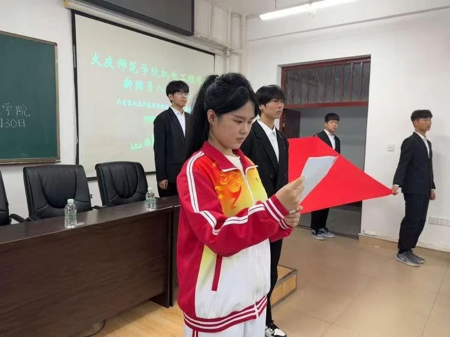 刘芮同学作为老团员代表,对新入团的同学表示衷心祝贺,鼓励新团员们要珍惜青春年华,争当青年表率,为全面建设社会主义现代化强国奋斗。