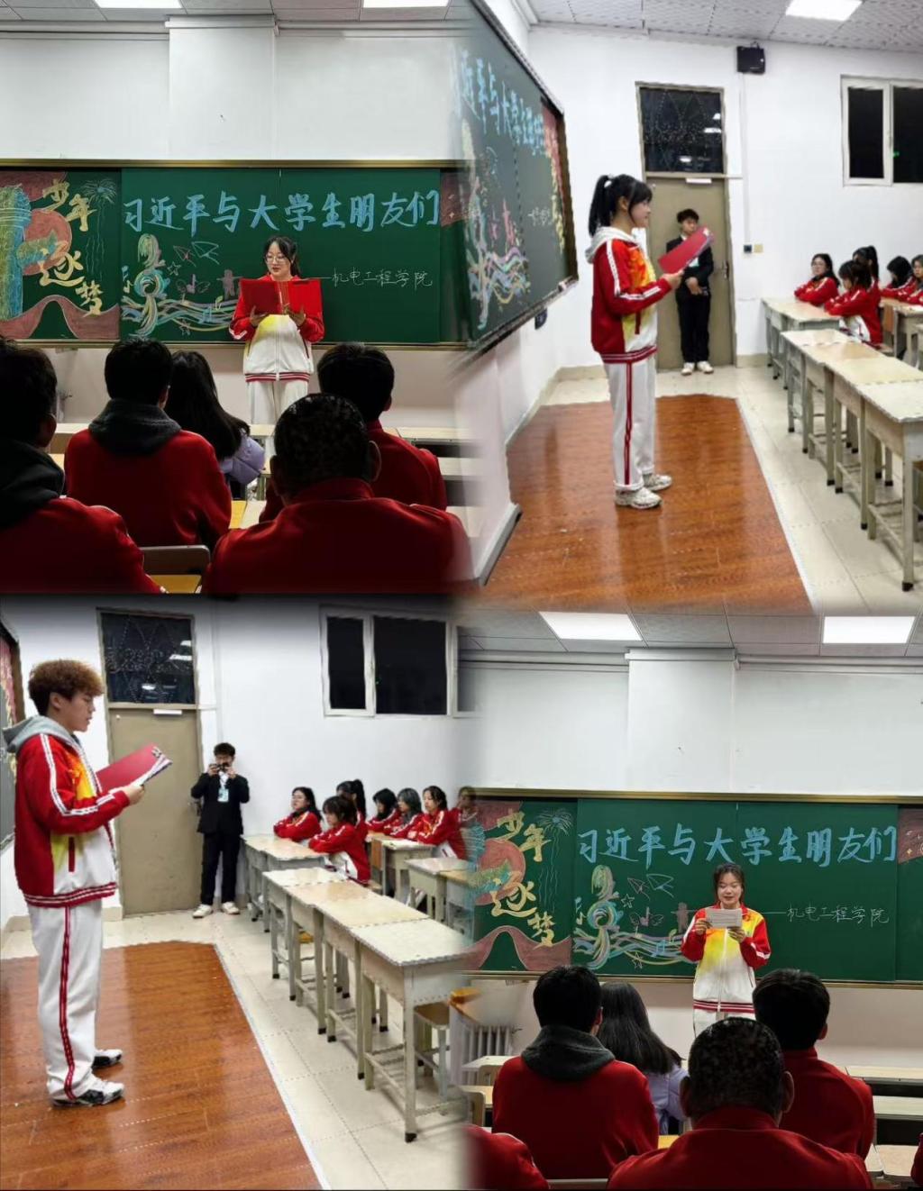 读学:同学们通过学习和领悟习近平总书记与大学生交流时的金句和教诲,深刻感受到国家对青年一代寄予的厚望和重托,激励同学们成为有本领、有理想的新时代好青年。