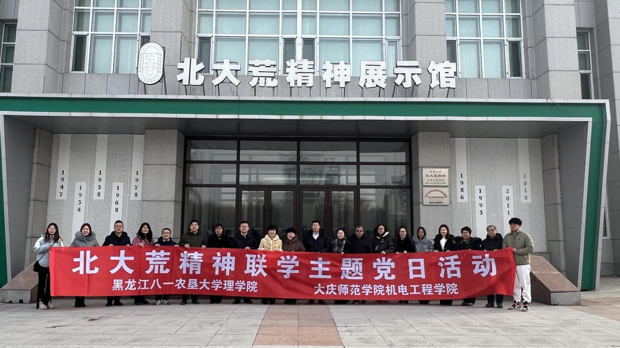 为落实立德树人根本任务,加强基层党组织建设,促进资源共享、优势互补,以互学互鉴为基石,激发党建工作新活力,12月30日,澳门网投十大信誉平台一行13人赴黑龙江八一农垦大学理学院共建交流,签订党建共建协议,进行交流座谈,并进行了北大荒精神联学主题党日活动。八一农大理学院党委书记刘丽、院长冯世德、党委副书记宋添星、副院长朱焕、教师代表,澳门网投十大信誉平台党总支书记闻世宇、院长刘永皓、党总支副书记董云峰、副院长王玉玲、崔峰及教师代表参会。会议由八一农大理学院副院长朱焕主持。