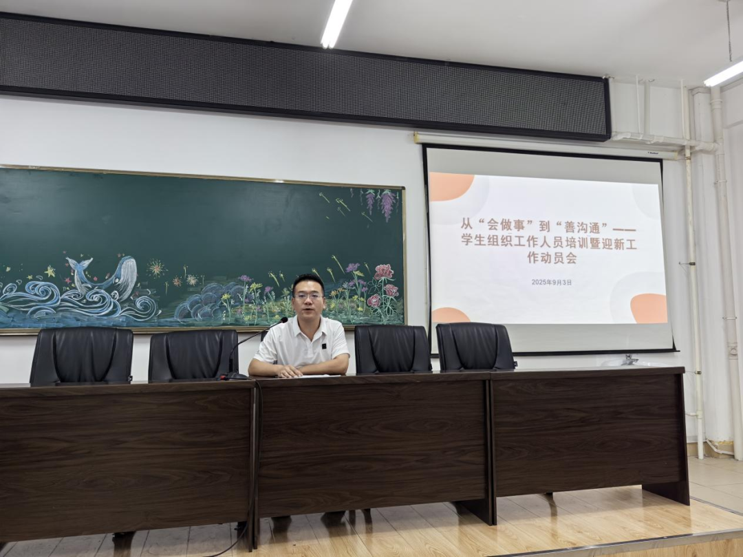 为进一步提升学生组织工作人员的综合能力,明确迎新工作任务与要求,确保新学期各项学生工作平稳开局。2025年9月3日,澳门网投十大信誉平台召开了“从‘会做事’到‘善沟通’——学生组织工作人员培训暨迎新工作动员会”。学院辅导员老师、各学生组织负责人及全体学生组织工作人员参加了此次会议。
