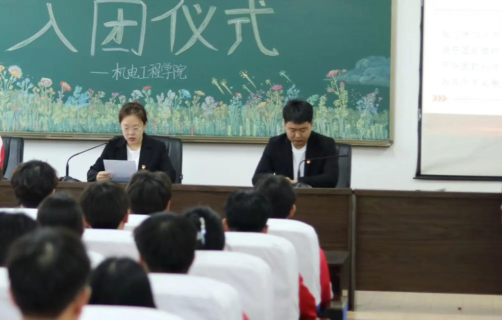 首先,主持人宣读新团员入团名单,本次一共有102名同学光荣的加入中国共产主义青年团,老团员代表为新团员们佩戴上闪耀的团徽,那小小的团徽承载着重大的使命与责任。激励青年们传承革命传统,弘扬奋斗精神。